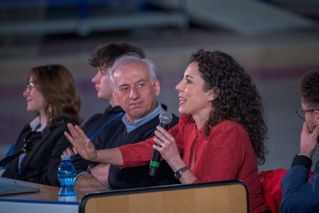 I ragazzi si sono confrontati con le parole di Silvia e Matteo, dopo aver lavorato sul libro, sulle slide della mostra e su altro materiale riguardante al tema e che vi proponiamo negli approfondimenti qui sotto. Dopo i primi interventi dei relatori, di forte intensità emotiva, si è aperta la parte più importante, ovvero quella delle domande degli studenti. Ne sono giunte una settantina dal lavoro fatto in classe e altrettante in quella mattinata. La presidente e il vicepresidente della Consulta, Aurora e Nikolai, hanno selezionato le più efficaci, sottoponendole a Silvia e Matteo.