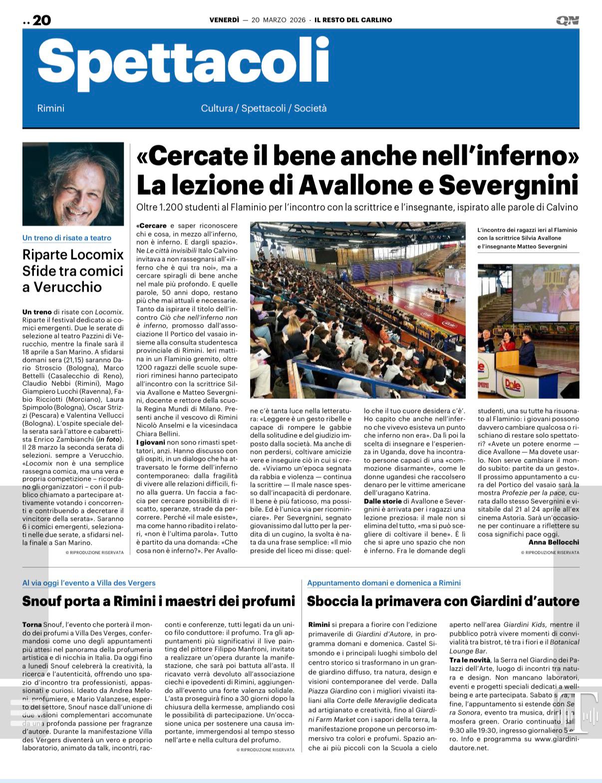 “Cercate il bene anche nell’inferno”. La lezione di Avallone e SevergniniIl Resto del Carlino – 20 marzo 2026 (qui in pdf)